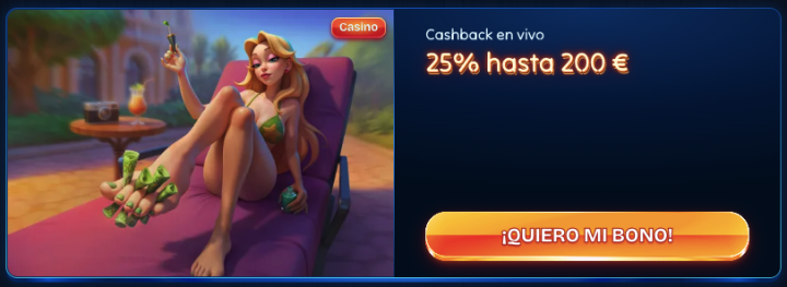 Dudespin ofrece un cashback de tus pérdidas semanales dentro del casino en vivo. El reembolso te da el 25% de tus pérdidas netas, hasta un máximo de 200€. Para reclamarlo, solo debes apostar la totalidad del reembolso al menos una vez.