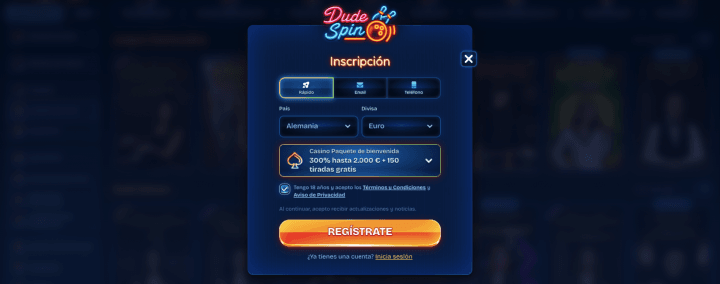 Cómo crear una cuenta en Dudespin ahora y recibe el paquete de bienvenida del 300% hasta 2.000