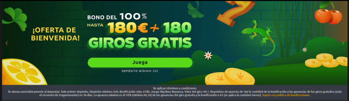 El bono de bienvenida de GeckoPlay ofrece un 100% extra hasta 180€, además de 180 giros gratis para jugar en Big Bass Bonanza.