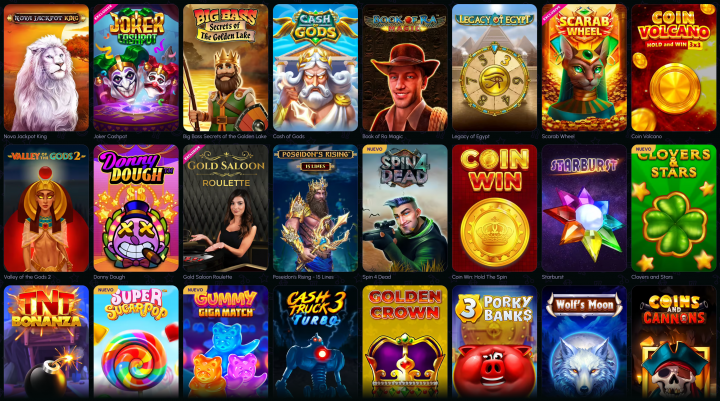 NovaJackpot tiene más de 9,800 juegos de casino en su catálogo. Puedes conseguir juegos de tragamonedas, juegos de mesa, salas de casino en vivo y muchos juegos más. Afortunadamente, hay muchas opciones de proveedores famosos como Pragmatic Play, Play’N Go, Evolution, Microgaming, entre otros.