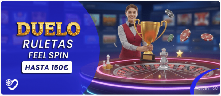Las ruletas del proveedor Feelspin tienen una promoción especial en OnePlay. Esta promo te da hasta 150€ divididos en 75€ al primer lugar, 50€ al segundo y 25€ al tercero. Solo debes depositar al menos 10€ y jugar a las ruletas de este proveedor. Cada 10€ equivale a un punto, tal y como ocurre con la promoción de fin de semana salvaje.