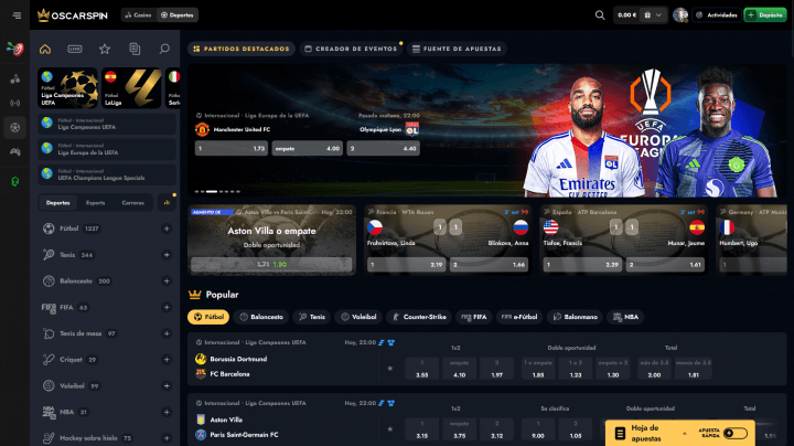Oscarspin es un casino y casa de apuestas deportivas con una oferta de juegos de azar interesante. Entre sus ventajas, destacan cosas como un catálogo de juegos bastante bueno, una buena cantidad de deportes para apostar, e incluso más de 20 promociones de calidad. Si quieres saber más sobre sus ventajas (y desventajas), entonces sigue leyendo esta reseña hecha por nuestro equipo de expertos.