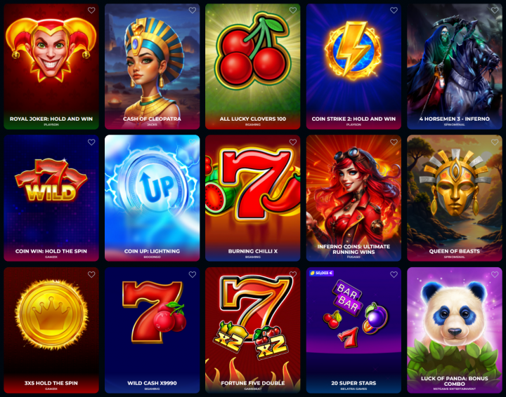 Piperspin te ofrece miles de slots de calidad, incluyendo los suyos propios. Hay muchos tipos: clásicas de bar, juegos de pago instantáneo, megaways, etc. En la pantalla principal puedes elegirlas por popularidad, nuevas y más etiquetas. También puedes buscarlas en la barra lateral por sus categorías o simplemente buscarlas por su nombre usando el buscador.