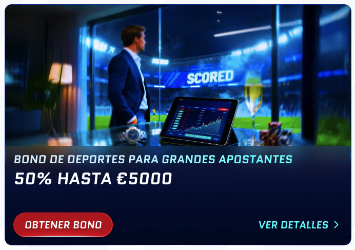 Scored es un casino todo en uno que desde el primer día ha sorprendido el mercado con un montón de bonos. No solo lo destacamos por su paquete de bienvenida del 100%-150% hasta 3.700€, sino porque incluso te permite negociar bonos, obtener promociones de recarga todas las semanas, emplear un cashback atractivo y disfrutar de un montón de promociones para apuestas deportivas.