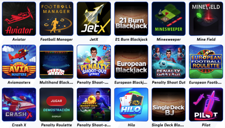 Los juegos tienen de todo, slots, juegos de crash, plinko, juegos de mesa, salas de casino en vivo y aún más juegos. Y si te lo estabas preguntando, puedes jugar en versión demo a casi todos los juegos, salvo las opciones en vivo.