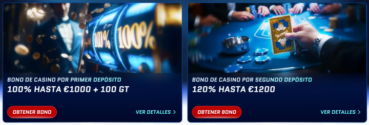 - Bono del 550% hasta 5.000€ para high rollers si depositas 1.000 o más.