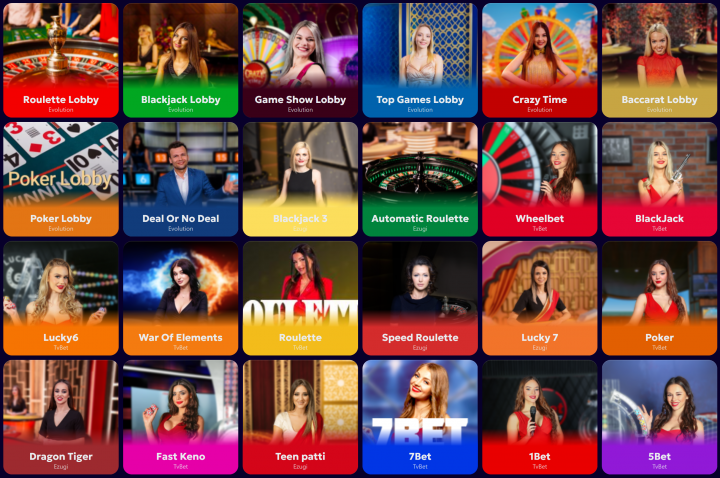Hay más de 20 salas de juego de casino en vivo para jugar en Slottio. En estas salas hay juegos de blackjack, ruleta, baccarat, póker, game shows, entre otros juegos. Los proveedores de estas salas son tres de los más reconocidos, Evolution Gaming, TVBet y Ezugi.