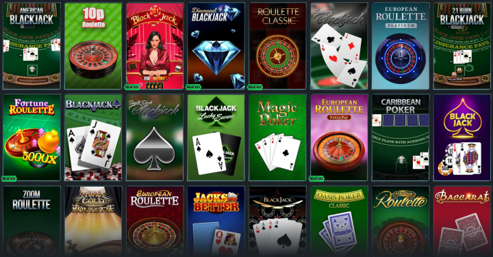 En su oferta de juegos de mesa la variedad es aún mayor. Si clicas la pestaña de juegos de mesa se despliegan cientos de juegos de blackjack, ruleta, póker, bacará e incluso game shows digitales. Algunos de los que te recomendamos probar son el American Blackjack, la European Roulette y el Magic Poker.