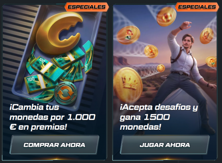 - 100% de tu primer depósito hasta 1.000€ + 100 tiradas gratis