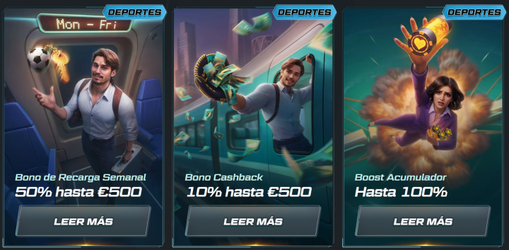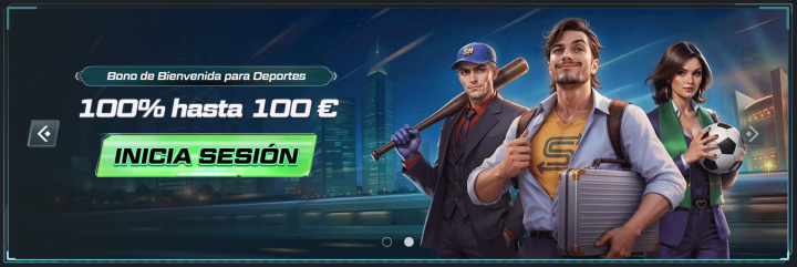 Para las apuestas deportivas, se comienza con un bono de bienvenida del 100% hasta 100€.