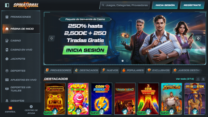 Spinational Casino se presenta como una plataforma vibrante y moderna que reúne una masiva cantidad de beneficios que van desde un bono inicial de hasta 2.500€ hasta una plataforma gamificada que te da beneficios extras solo por jugar. En esta reseña, te contamos cómo nos fue luego de probar todo su programa de bonos, sus juegos, opciones de pago y más factores que determinarán si realmente este casino vale la pena en este 2025.
