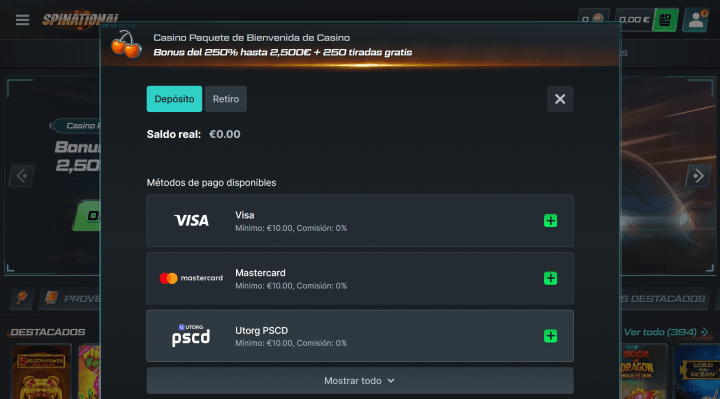 Bono de bienvenida de Spinational - 250% hasta 2.500€ + 250 FS
