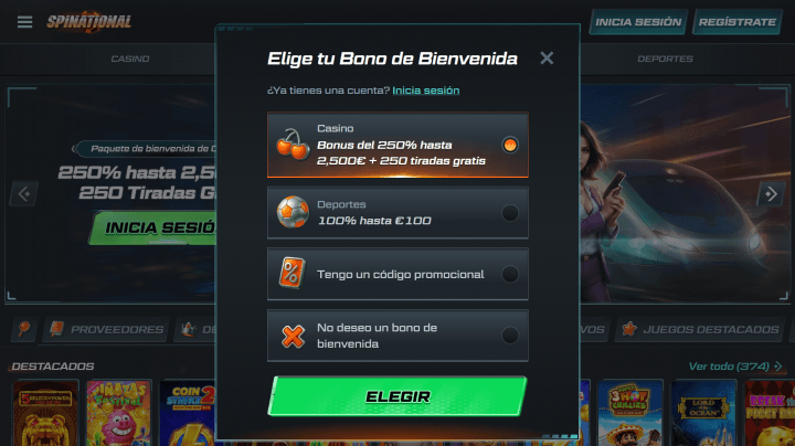 - Elige el bono de bienvenida del casino, o si quieres el de apuestas deportivas.