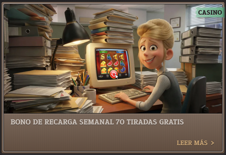 Este es otro bono competitivo, aunque modesto. Si depositas al menos 20€ te dan 70 tiradas gratis, puedes usarlo entre lunes y jueves una vez por semana. Para liberarlo, se exige un rollover de 40x, lo cual es estándar en la industria.