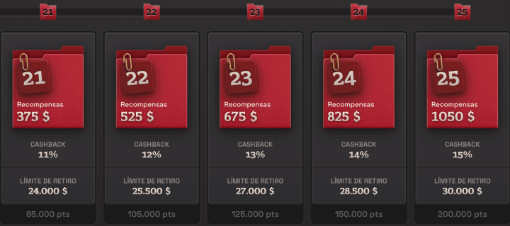 Si bien subir de nivel no es demasiado difícil, debemos señalar que estos límites son muy bajos, haciendo que no sean del todo compatible con usuarios High Rollers. Esto es especialmente irónico considerando que su bono de bienvenida es de los más robustos del mercado.