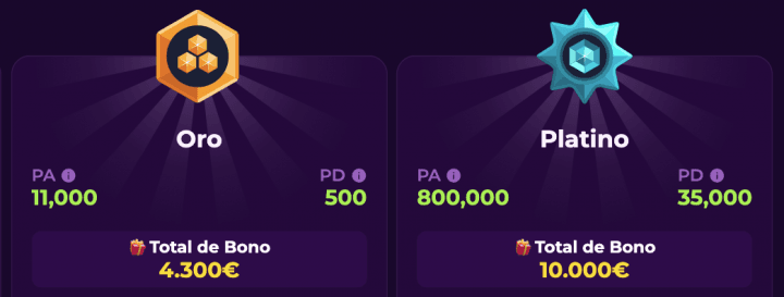 Los mejores beneficios llegan al nivel oro, donde automáticamente comienzas a formar parte de los usuarios VIP, desbloqueando un montón de beneficios extras como Gestor VIP, mejor asistencia, bonos exclusivos, límites ampliados (retiradas), retiradas más rápidas y se mejoran tus beneficios tanto en la ruleta como en el bono semanal.