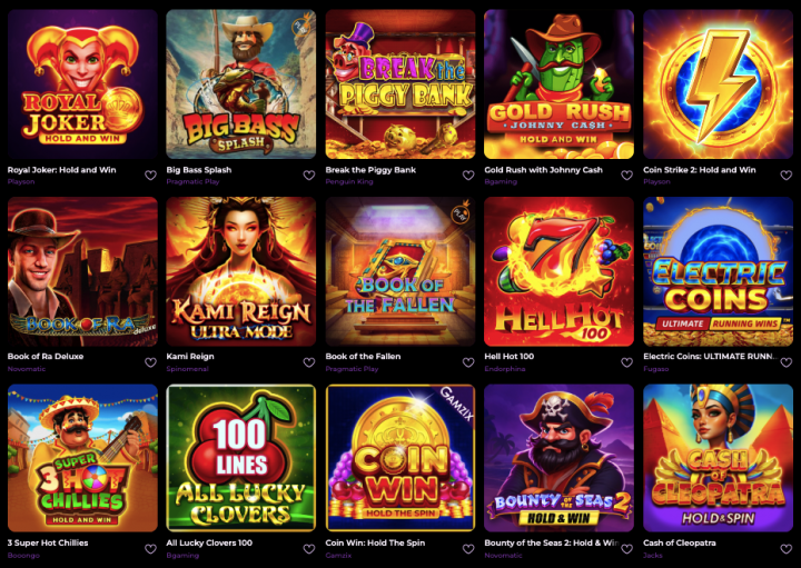 El catálogo tiene slots, juegos de mesa, juegos instantáneos y salas de casino en vivo. Con las siguientes variantes de juegos: