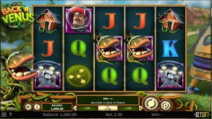 La tragaperras Back to Venus tiene 5 carretes, 3 filas para símbolos y 20 líneas de pago. Al igual que su predecesora, ‘It Came From Venus’, hay muchos bonos, tiradas gratis y símbolos divertidos. Tal como sucede con la mayoría de tragaperras online, la combinación de símbolos debe alinearse en los carretes 1-2-3, 1-2-3-4 y 1-2-3-4-5. Si el mismo símbolo se alinea en los carretes en cualquier otro orden, esto no contará como una victoria excepto para el símbolo scatter que puede caer en cualquier lugar de los carretes.