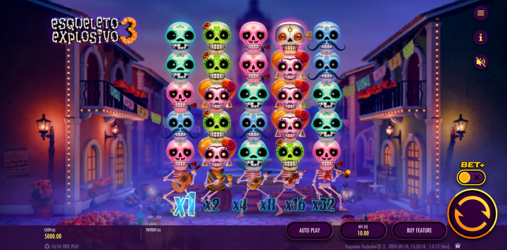 Esqueleto Explosivo 3 es la tercera entrega de la saga de Thunderkick. En cuanto a experiencia de juego, esta slot es una majestuosa obra inspirada en el tradicional Día de Muertos de México. Y como su nombre lo indica, también cuenta con un toque de acción añadiendo explosiones sobre los esqueletos y calaveras. Todo esto sobre un escenario diseñado en 3ra dimensión, música y muchos fuegos artificiales. Sin mencionar que además cuenta con una vibrante jugabilidad, llena de funciones especiales y premios muy atractivos.