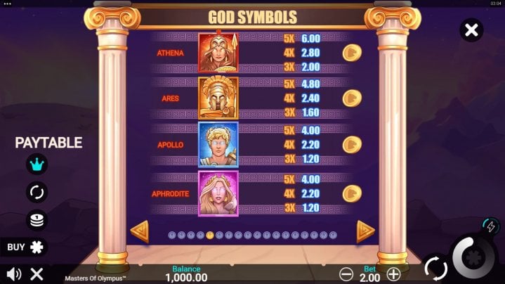 Masters of Olympus es una slot de video con una jugabilidad emocionante y una gran variedad de símbolos inspirados en la mitología griega. Desde Zeus hasta Atenea, pasando por animales y objetos icónicos, los símbolos de esta tragaperras te sumergirán en un mundo lleno de dioses y héroes.
