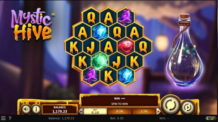 La video tragaperras Mystic Hive te ofrece otra serie de carretes únicos que usan el sistema hexagonal de BetSoft.