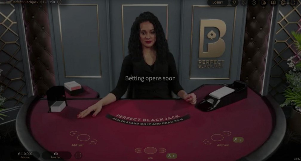 Puedes jugar en 1 puesto o hasta en 7 puestos simultáneamente, y si la tabla está llena, tu casino abrirá otra mesa de Perfect Blackjack. También puedes pasar por las diferentes mesas para encontrar un crupier con el que prefieras jugar.