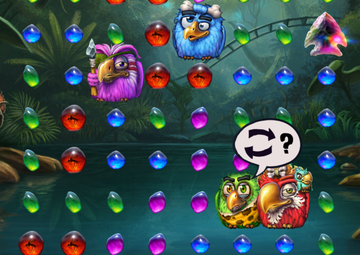 Los huevos de dinosaurio recolectados son agitados por los loros, luego de acabar la recolección, de este huevo sale un dinosaurio que ahuyenta y reorganiza a las aves. Esto permite al jugador conseguir nuevas combinaciones ganadoras.