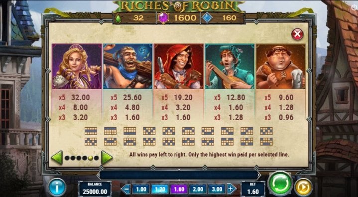La tragaperras online Riches of Robin fue lanzada en marzo de 2020 por Play’n Go y representa la popular historia de Robin Hood. Conocerás a todos los personajes del cuento incluyendo a Robin Hood, Lady Marian, Alan-a-Dale, el fraile Tuck, el pequeño Juan y Will Scarlet cuando estés girando los carretes en uno de los tradicionales pueblos campestres de Nottingham.