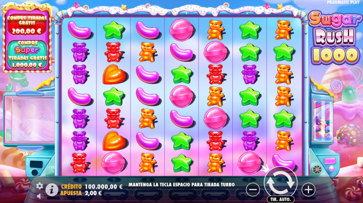 Sugar Rush 1000 es una tragaperras online que te invita a un mundo de dulces y golosinas. Es una versión mejorada de su popular predecesora ofrece una experiencia de juego aún más dulce y emocionante, así como una actualización de sus gráficos. Además, sus gráficos vibrantes, animaciones suaves y funciones especiales hacen de este juego una verdadera delicia para los sentidos.