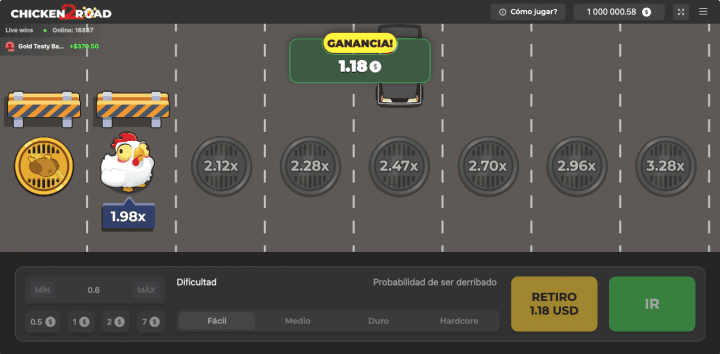 Podemos decir que aprender a jugar al Chicken Road toma menos de un minuto, aunque dominarlo ya es otra cosa. La jugabilidad en sí es simple: debes ir lo más lejos posible sin perder en el proceso, retirándote cuando creas conveniente. El juego se puede jugar tanto en ordenador como en móvil en cualquiera de sus versiones.
