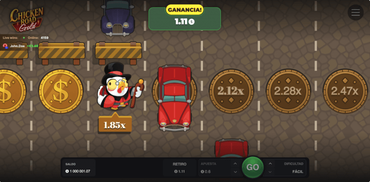 La versión llamada Chicken Road Gold es una variante en la que la gallina atraviesa una carretera británica de principios del siglo pasado. El diseño es una verdadera maravilla, pues cambia la temática, la música y mejora los gráficos. Tienes que atravesar una carretera con alcantarillas con multiplicadores y evitar ser atropellado por un coche antiguo. Además, usa el nuevo formato de interfaz, el cual está más pulido y trabajado. Sin embargo, mantiene el RTP reducido en comparación al juego original.