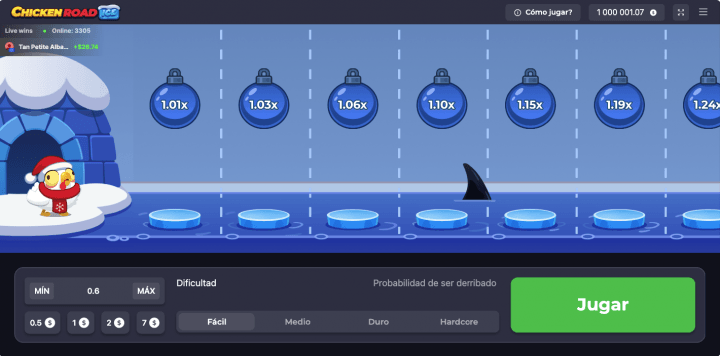 Esta podría llamarse la versión navideña o invernal del juego. En Chicken Road Ice nuestro pollo se traslada al polo norte, donde veremos un iglú y un lago con pequeñas plataformas de hielo. Esta vez no hay coches, pues el riesgo es ser devorado por un depredador marino. Aunque es uno de los más nuevos, este se devuelve a la interfaz del juego original. Pero, mantiene el RTP y los gráficos de los juegos más modernos.
