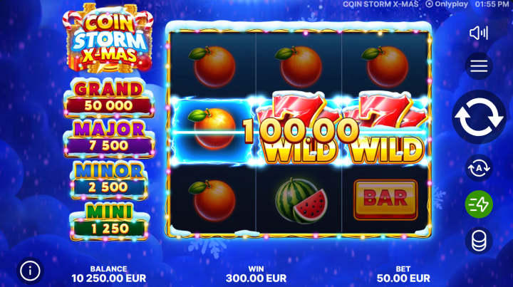 Para cerrar con broche de oro, tenemos la Coin Storm X-Mas de Onlyplay. Esta será sin duda la slot perfecta para aquellos que buscan una tragaperras clásica, con un toque navideño y con un respaldo de pertenecer a una de las sagas más llamativas de la industria. El juego no solo combina una slot de frutas y campanas con toda una decoración navideña, sino que su música y efectos visuales te dan una experiencia dinámica, divertida y muy navideña. Además, su interfaz es de las que mejor se adapta a los móviles, así que puedes jugar desde cualquier lugar.