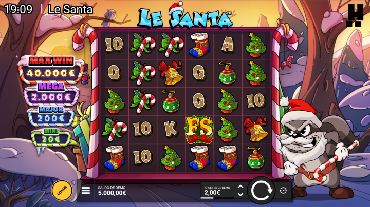 La saga del mapache Smokey que comenzó con Le Bandit y se popularizó con Le Zeus ahora también tiene una versión navideña: Le Santa. Este ha sido el más reciente lanzamiento del juego, una que combina las guirnaldas, luces y dulces navideños con la ya conocida mecánica de “Super Cascade”. Smokey también ha cambiado su disfraz por un traje de Santa, abrigándose del escenario nevado.