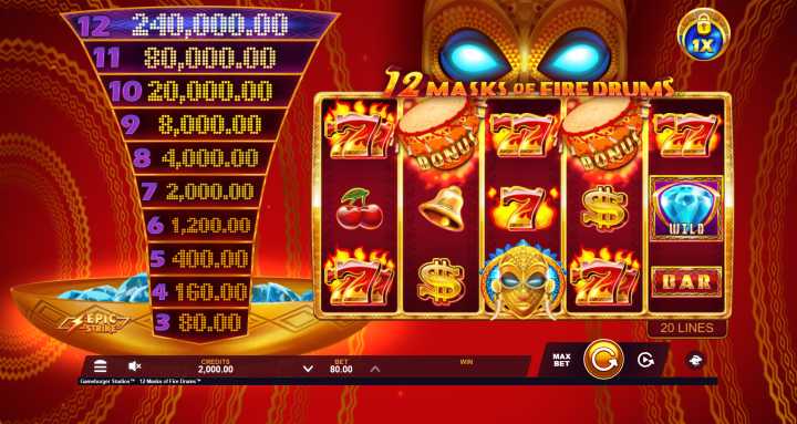 Bonus Slot Features in 12 Masks of Fire Drums Game