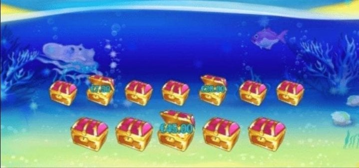 The next feature is the ‘Sunken Chest’ bonus round. This entails rolling in 3, 4, or 5 ‘Bonus Chest’ symbols anywhere in reels without the need for pay lines or for the combination to be on adjacent reels. You will be whisked to the shallows of the beach where you will need to choose 3 sunken chests from 12. Each chest will reveal your win amount, it will then be accumulated, and you will be paid at the end of the bonus.