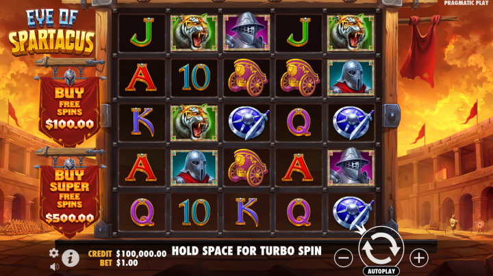 Eye of Spartacus is a high-volatility casino slot inspired by the Roman gladiator Spartacus. If you’re one of the many people inspired by stories of his bravery and resistance, you may have a chance to step directly into the story yourself. Now, Pragmatic Play allows you to determine your bravery with the Eye of Spartacus slot. The default RTP of 96.42% and a max win potential of 10,000x surely heat the game.
