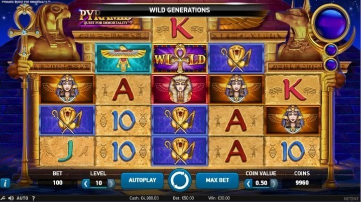The Pyramid Quest For Immortality takes you back through the sands of time to the lands of the pharaohs where mystic wins ancient symbols from Egyptian legends will help to bring you good fortune and lead you to riches.