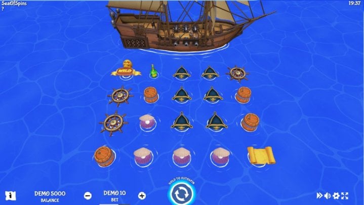 Evoplay does not use lines to separate the reels on the Sea of Spins slot game. Symbols are lined up in moving seawater with Captain Lady Fortuna’s galleon at the top of the reels ready to shoot symbols off the reels to make way for wild symbols. All of this is displayed using HTML5 mobile-friendly code and 3D graphics. This slot game is also available in full HD up to a game resolution of 16:9.