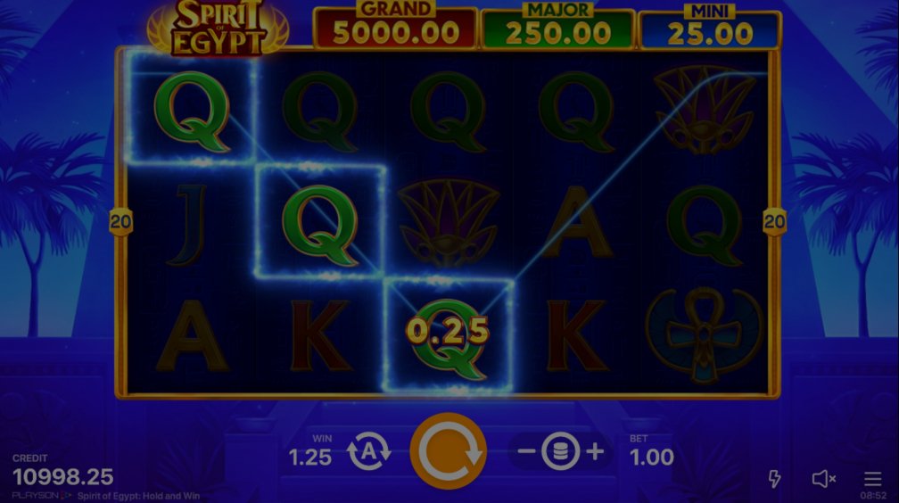 Spirit of Egypt uses a standard 5 by 3-reel layout which hosts 20 paylines and it has a jackpot 5,000x.